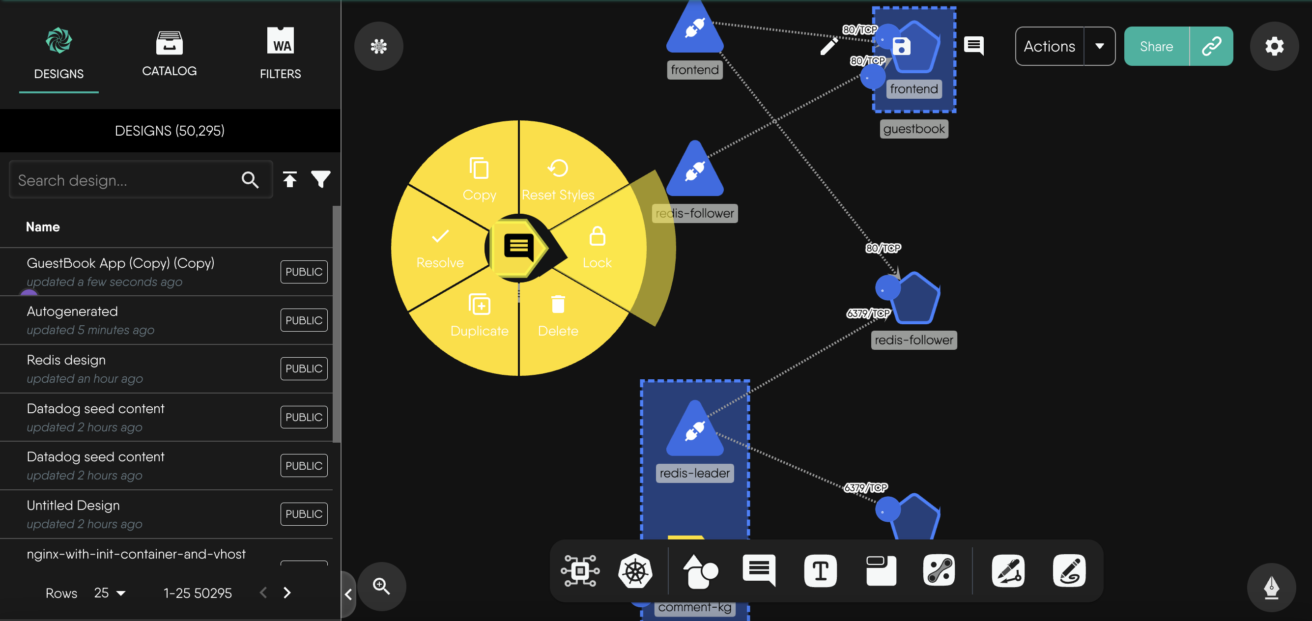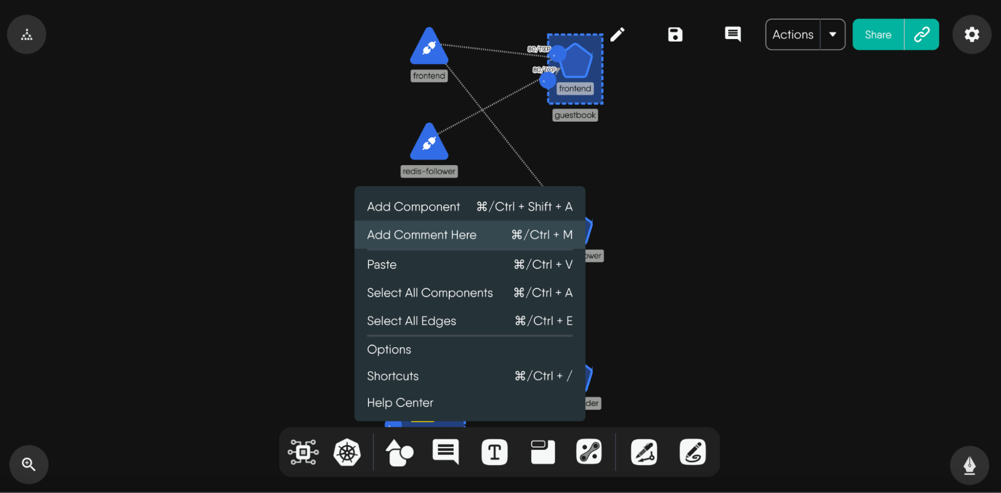 Non-Invasive Annotations: Annotations, shapes, or drawings created within the tool remain separate visual aids, not altering the actual infrastructure components. This means you can annotate freely without worrying about modifying the core design elements.